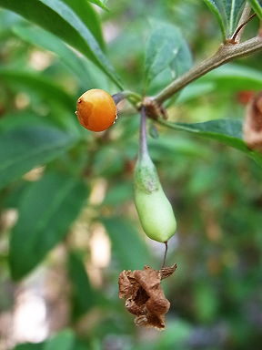 秋に、ぶどうのタネみたいな実がなる。花の形とのギャップが大きい。